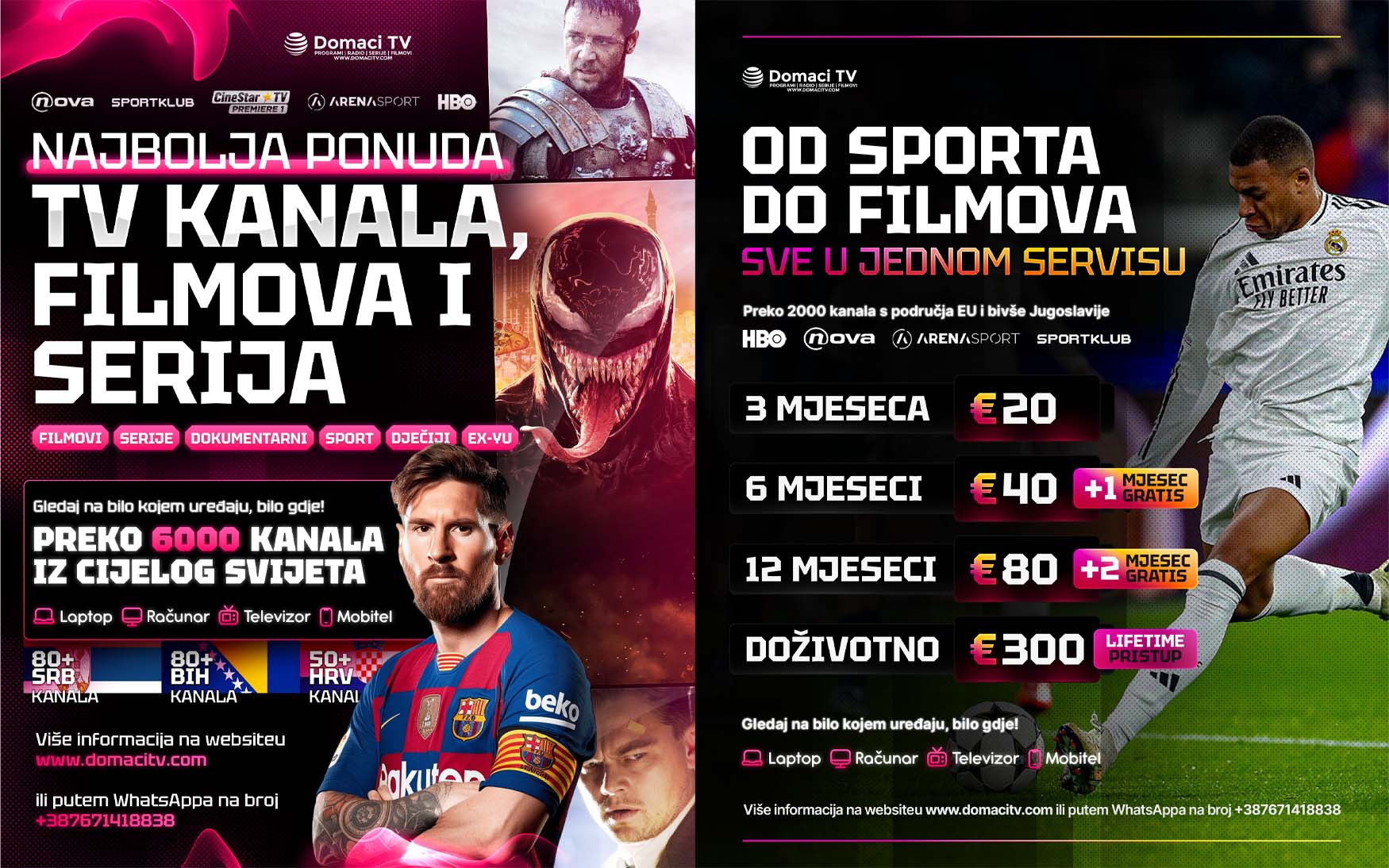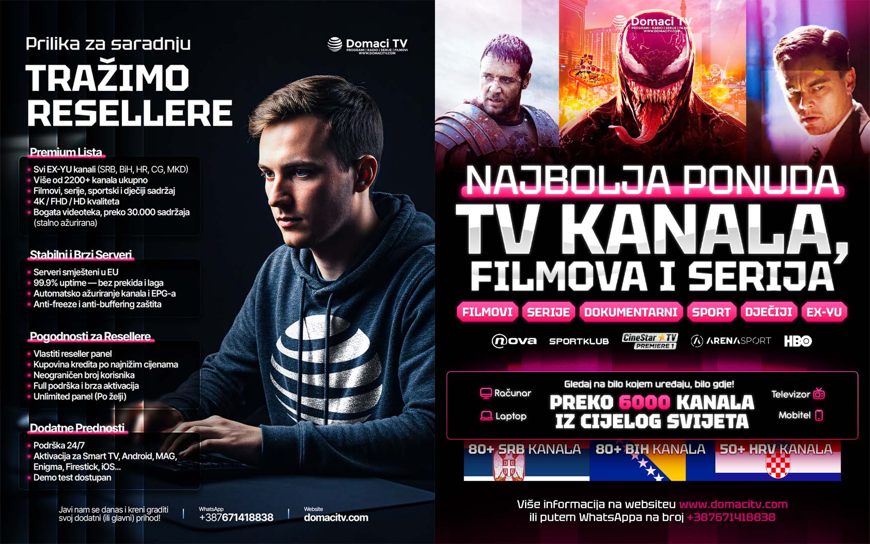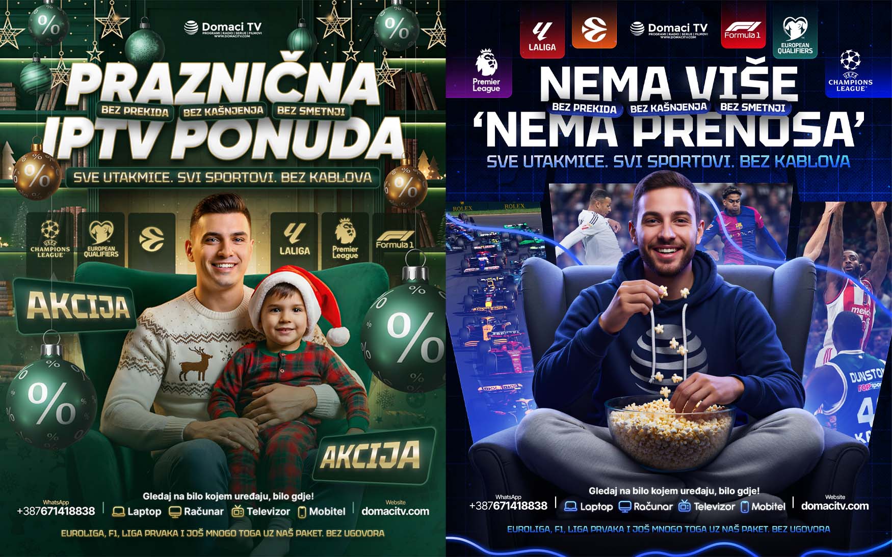 To support the launch and promotion of the brand, I created multiple Instagram promotional posts, all aligned with the new visual identity. The designs maintain a clean, bold, and energetic look, helping DomaćiTV clearly communicate its offering and stand out in a competitive IPTV market.