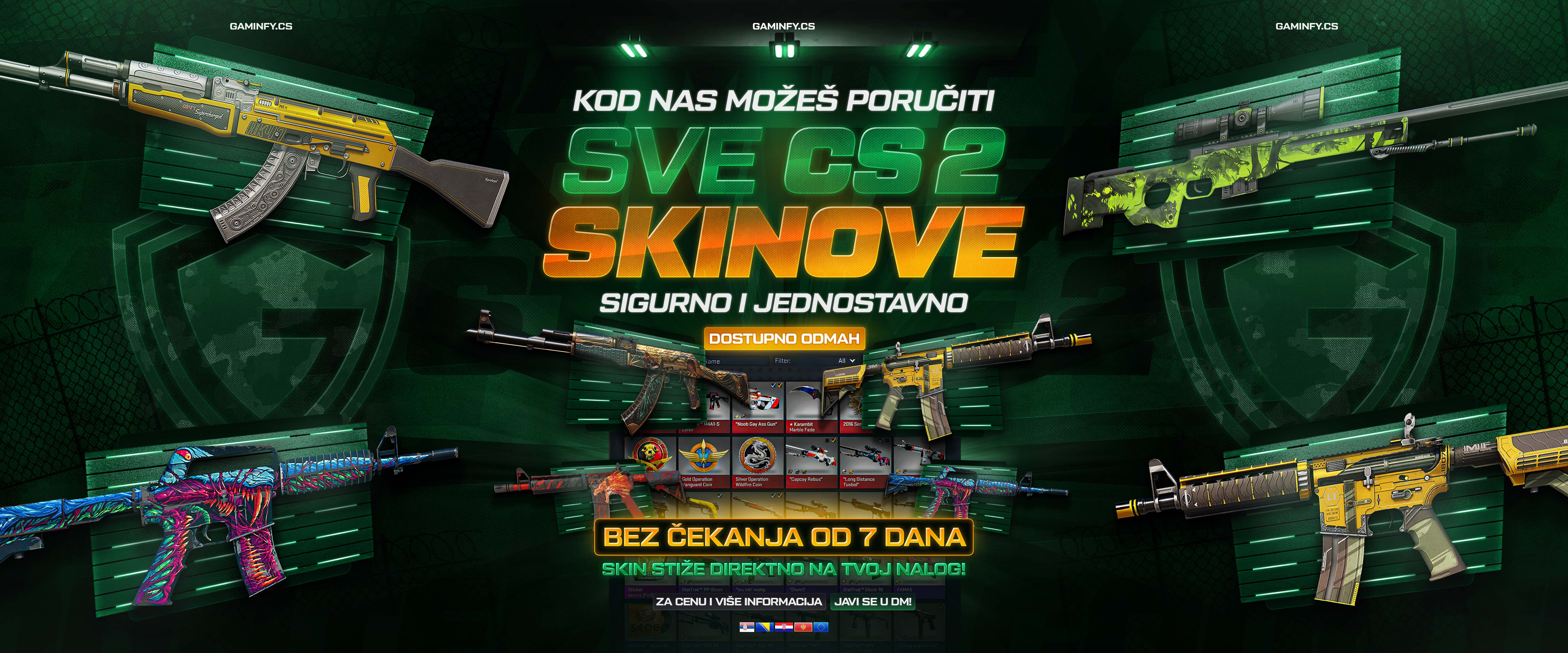 Following our successful collaboration on Gaminfy.rs, the team behind the brand returned with a new venture – Gaminfy.cs, a platform focused on buying, selling, and trading Counter-Strike skins and items. My task was to craft a vibrant and recognizable visual identity for this new branch of their brand.