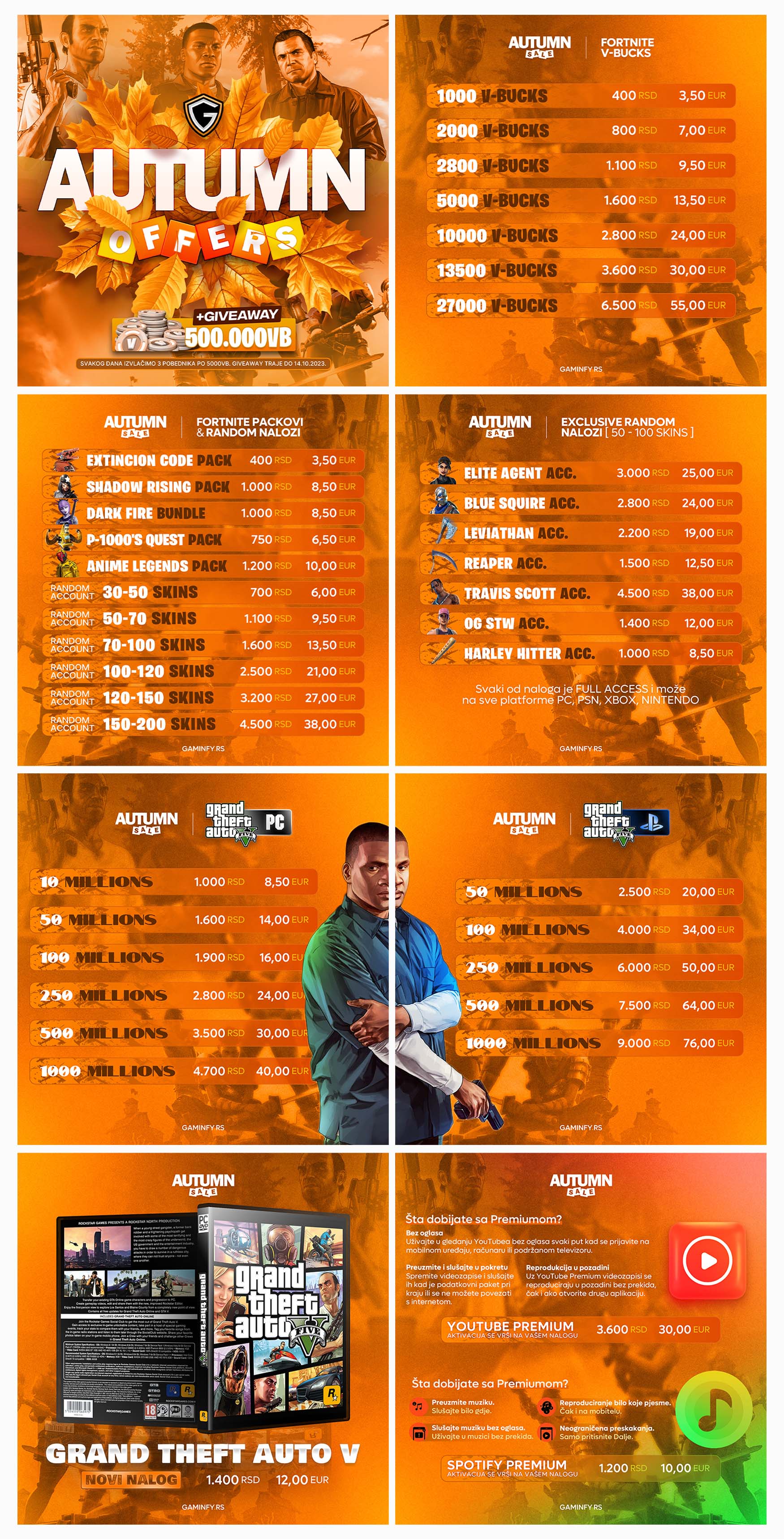 This project was another seasonal campaign created for Gaminfy.rs, focused on introducing Autumn Offers through a fully adapted visual style. The task was to reshape the entire look of the profile to reflect the autumn atmosphere while keeping the brand’s strong and recognizable identity intact.
